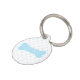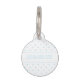 Un patrón de lunares pequeños muy claro azul junto con una silueta de hueso de perro azul en la parte delantera. En el hueso hay un área de texto personalizable para el nombre de la mascota. La parte trasera tiene un área de texto personalizable para un número de teléfono.
