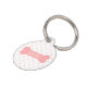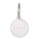 Un patrón de lunares pequeños rosados junto con una silueta de hueso de perro rosa en la parte delantera. En el hueso hay un área de texto personalizable para el nombre de la mascota. La parte trasera tiene un área de texto personalizable para un número de teléfono.