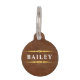 Placa Para Mascotas Lux Brown Leather & Gold Monogram Name