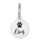 Etiqueta de identificación de mascotas con mascota negro estilizado, impresión de la pata de perro y nombre del mascota de personalizable en la parte delantera y plantilla de texto con número de teléfono en la parte posterior. El color de fondo es blanco y se puede cambiar según se desee. Este fácil de personalizar un colgante de cuello de mascota es una buena idea de regalo para todos los dueños de mascotas y sus aventureros de cuatro patas. Mucha alegría en el diseño y entrega © y.BEE PAPERIE