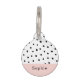 Una moderna y sencilla etiqueta mascota con puntos negros de polka y una zona rosa rubor para el personalizar con el nombre de sus mascotas. Mantenga a su mascota a salvo asegurándose de que sus datos de contacto estén siempre en contacto con su mascota.