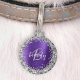 Placa Para Mascotas Monograma de Metal Cepillado Morado con Brillo Pla
