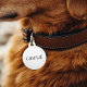 Mantenga a su cachorro seguro y con estilo con esta placa de identificación de perro personalizada con monograma. Con un diseño simple y minimalista con el nombre de su mascota en una fuente clásica serif, esta etiqueta es elegante y práctica. Personalice la parte trasera con su número de teléfono, dirección o cualquier texto personalizado para mayor tranquilidad. Utilice las herramientas de diseño para elegir sus fuentes, colores y formas favoritas para crear una etiqueta que se adapte a la personalidad de su perro.