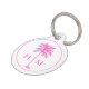 Esta moderna etiqueta de perro inspirada en la costa presenta un lindo palmeto rosa sobre blanco con un monograma que puedes personalizar con tus iniciales en la parte delantera y la información de contacto en la parte trasera.