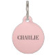 Placa Para Mascotas Monograma del nombre clásico de Charlie | Rosa