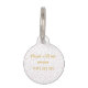 Mantén a tu mascota a salvo de una manera elegante con esta etiqueta de identidad personalizado de diseño rosa, bonita y moderna. Esta etiqueta muestra su nombre en una fuente de estilo retro con tonos dorados y sus detalles de forma segura en la parte posterior.