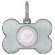 Customized pet tag printed with a handpainted pink watercolor bow pattern on canvas-textured background hand painted by Anne Londez, perfect for a coquette feminine look personalized with your own little critter's monogram initial. Edit the text to enter your own initial.