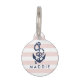 Placa Para Mascotas Nautical Pink Stripe Anchor Personalizado