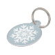 Este diseño presenta una ventisca de copos de nieve sobre un fondo azul.