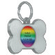 Nombre simple arcoiris contacto información perro hueso metalizado lindo moderno divertido etiqueta de identificación de mascotas