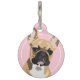 Placa Para Mascotas Nombre de perro Bulldog francés rosado personaliza