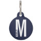 Mantenga a su mascota a salvo y no vuelva a perder nunca con esta etiqueta mascota que incluye la letra "M" en monograma personalizada y el nombre en negrita moderna estilo de letra sans serif en la parte delantera y la información de contacto del propietario en la parte posterior. Perfecto para tus perros, gatos y queridos mascotas.