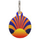 La pared de ladrillo de Sun Graffiti es una obra de arte digital con un fondo de degradado azul oscuro y un sol de gradiente naranja de color rojo amarillo en la parte inferior, vigas de sol en la parte superior y exterior.