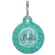 Placa Para Mascotas Patrón verde azulado de purpurina espumoso monogra