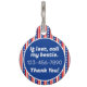 This modern USA-inspired pet ID tag is perfect for any cat or dog who loves the red, white, and blue. Add a personalized name and contact info for a tag that’s both stylish and safe. Featuring a cute paw design with a patriotic US vibe, this custom pet name tag is the perfect way to celebrate your furry friend’s all-American spirit! 🐶🐱🇺🇸
