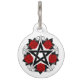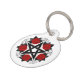 Pentagrama negro con estampado, decorado con rosas rojas florecientes con hojas sobre fondo blanco. Estilo tatuaje.