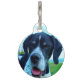 Etiquetas de perro punteros inglesas.Fabricadas a partir de acero 100% reciclado para mayor durabilidad, estas etiquetas están garantizadas a no desgastar nunca. Disponible en dos tamaños. ¡Diseña una placa única que vaya a juego con la personalidad de tu mascota! Dimensiones: 2,2 cm de diámetro (pequeño), 3,1 cm de diámetro (grande) Diseños y texto impreso en tinta de color completa y resistente a la desvanecimiento .Anillo de llaves Metalizado para colgar directamente sobre el collar incluido. Fabricada en EE. UU.