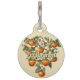 Ilustracion Persimmons. Frutas, flores y hojas en ramas. Color de fondo personalizado. Texto personalizado en ambos lados.
