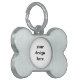 Estilo: Hueso Estas etiquetas mascotas en forma de hueso personalizado son el accesorio perfecto para sus amigos de cuatro patas. Fabricada con plata pulida e impresa con tus imágenes, diseños y textos a todo color para que no se desvanezcan en años. Este precioso accesorio es resistente a los rayos UV y al agua, de forma que aguantará perfectamente el paso del tiempo hasta con la mascota más aventurera. Dimensiones: 1,5" l x 1,5" w resistentes a UV e impermeables Made in USA