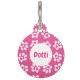¡Etiqueta de identificación mascota personalizada! Mantén a salvo a tu viejo amigo y puedes regresar a casa si te pierdes con esta etiqueta de identificación mascota que incluye un diseño de impresión rosa y blanco que se puede personalizar con el nombre de tu mascota y la información de contacto.