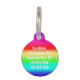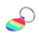 Etiqueta del mascota de la raya de la pendiente de los colores del arco iris. Personalice la tipografía cursiva elegante con el nombre, el monograma, o el otro texto en frente y la parte posterior de la información de contacto del dueño del mascota encendido. Con su fondo inspirador brillante e intrépido del color, este diseño retro del arco iris hace una etiqueta de identificación clásica y moderna. Idea linda y de moda del regalo para el amante del perro o del gato.