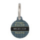 Vestir a su perro o gato con estilo con esta elegante etiqueta de identificación mascota que presenta un patrón clásico de yeso gris azul con un emblema dorado y texto de personalizable. Añada el nombre de un mascota al frente y el número de teléfono de la parte posterior para crear un regalo único para usted, nuevos propietarios de mascotas o amantes de los animales.
