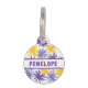 Vestir a su mascota en los vivos tonos de celebración con nuestra etiqueta de identificación de mascotas PomPom! Esta etiqueta presenta un exuberante salpicón de patrones pom-pom morados y dorados, un guiño a las festividades reales y los desfiles del Mardi Gras. Es una excelente elección para los mascotas que llevan un aire de nobleza y aman ser el centro de atención. La banda de nombres de personalizable en color púrpura contrastante asegura que la identidad de tu mascota es tan audaz como su personalidad.