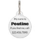 El Design incluye un original ilustracion de marca de poutine, un plato popular en Quebec, Canadá, y que incluye patatas fritas coronadas con requesones de queso y salsa marrón. ¡Ideal para tu comida favorita! Sólo personaliza con la información de tu mascota.