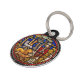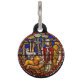 Proteja a su mascota con esta imagen de San Francisco de Asís. Personalizar la parte posterior con el nombre de su mascota y su número de teléfono. El texto de la parte trasera dice "ST. FRANCISCO DE PROTECTOR ASISI DE ANIMALES" en forma circular alrededor del borde. El diseño frontal presenta una imagen de vidrio manchado de San Francisco rodeada de animales mientras los bendice.