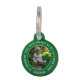 "San Francisco de Asís bendiga y mantenga a mi mascota segura" la etiqueta de identificación de mascota es personalizable con el nombre de tu mascota. La parte frontal presenta el nombre de tu mascota rodeado de un círculo con cristales falsos. Cambia el color de fondo de verde a cualquier color que te guste. Hay espacio para agregar más información si lo deseas. La parte trasera presenta una imagen de una estatua de San Francisco que puedes cambiar y reemplazar con una foto tuya o información de tu mascota. La linda cita también es editable. Una maravillosa etiqueta para cualquier mascota en tamaño grande y pequeño. Ideal para nuevos dueños de mascotas.