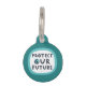 Este diseño presenta la frase "Proteja nuestro futuro" en letras modernas sobre fondo blanco.