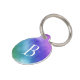 Fondo arcoíris color agua suave rosa, morado y verde azulado con un gato personalizado o monograma de perro inicial y nombre. Escriba su información de contacto personalizada en la parte posterior del colorido encanto del collar de identificación del mascota.