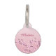 Marca de mascota de purpurina rosa lindo con el nombre de su gato en la parte delantera y su nombre y dirección en la parte posterior.