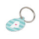 Dejen que su amigo muestre algo de orgullo en el estado de casa con esta linda etiqueta de identificación de mascotas de Rhode Island. El diseño presenta un mapa de silueta blanca del estado de Rhode Island con un corazón rosado en el interior, sobre un tono de fondo de rayas turquesa. Añada el nombre de su mascota y la información de contacto a la parte posterior con letras blancas en un fondo acuático.