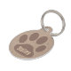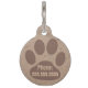 Etiqueta de perro personalizada con huella de pata y fondo de efecto texturizado para un aspecto rústico. Imagen repetida al revés al personalizado con su número de contacto.