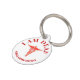 Una caduceus blanca sobre un círculo rojo y blanco descansa sobre un fondo blanco sólido que tiene plantillas rojas personalizados para su redacción personalizada.