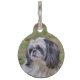 La cabeza de un shih tzu decora esta linda etiqueta de mascota con un lugar en la parte de atrás para el nombre y la información de contacto de su dueño