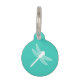 Placa Para Mascotas Silueta De Dragonfly Blanca Sobre Turquesa