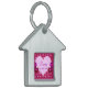 Sentidos tensos enmarcando un gran corazón rosado para agregar el nombre del mascota y tu propio número de teléfono. ¡Una etiqueta muy preciosa!