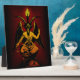 El Baphomet de Leví del siglo XIX se reimaginó y presentó aquí en un color llamativo para la nueva era satánica. Esto lucirá como una salchicha colgada en la pared de tu castillo. Disponible como poster, impreso o como pintura sobre lienzo. Enmarcado o sin enmarcar. En 1854, el ocultista francés Eliphas Levi publicó su famoso libro sobre la doctrina y el ritual de la magia trascendental. La portada incluía un grabado del dios cuerno que llamó "Baphomet" y "La cabra de los mendes". La imagen horrorizó a muchos e inspiró a otros en lo que se ha llamado el oculto resurgimiento francés del siglo XIX. La figura representaba lo absoluto y presentaba varios símbolos ocultos incluyendo un pentagrama puntal en la frente, carteles de mudra y las palabras "Resolver" y "Coagula" en los brazos. A pesar de la intención del gráfico de representar la sabiduría oculta en general, los cristianos ortodoxos la han caracterizado por mucho tiempo como satánica. Sin embargo, los de una inclinación verdaderamente diabólica han tendido a encontrar la vieja imagen fechada, domestica y por lo tanto poco inspiradora. Aquí se vuelve a crear esa imagen clásica con imágenes y símbolos explícitamente satánicos; el pentagrama de punto hacia abajo, la cruz invertida, el 666, el glifo alquímico de piedra de brillo, etc. No haya ninguna cuestión de representación de este arquetipo. No hay necesidad de usar un símbolo ligeramente perturbador, ambiguamente malvado. Ahora se puede tener una imagen provocativa, inconfundiblemente satánica.