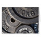 Fotografía de varias placas de levantamiento de pesas con texto de personalizable, "Sin excusas".