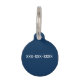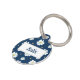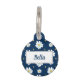 Placa de identificación de perro floral en azul marino con flores blancas. Personalizada con un nombre en el frente y un número de teléfono o cualquier texto que necesites en la parte posterior.