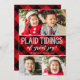 Esta divertida tarjeta de vacaciones con fotos presenta tres plantillas de fotos, cuadros de búfalo y un juego creativo de palabras: "¡Plaid tidings de gran alegría!"