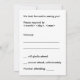 Este sencillo y humilde diseño de tarjetas RSVP incluye el mensaje "R.S.V.P." en la parte delantera, junto con un nombre de evento personalizado. También incluye un formulario RSVP de personalizable en la parte posterior para que el destinatario lo complete. Tarjetas RSVP como esta podrían ser usadas para averiguar quién asistirá a una ducha de bebé, un fiesta de cena, una ducha de boda, un fiesta de Navidades o alguna otra celebración.