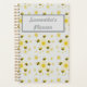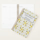 Este encantador cuaderno cuenta con una deliciosa variedad de dásidos estilizados en blanco suave con centros amarillos soleados. Abejas de púas juguetonas, representadas con alegres rayas amarillas y negras con delicadas alas blancas, zumban alrededor de las flores. Los pequeños puntos amarillos se esparcieron por el suave fondo gris, añadiendo un toque de dulzura a la decoración general.