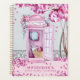 Este hermoso planificador de blogs en primavera presenta una cabina de teléfono rosa adornada con flores y un árbol cercano lanzando flores rosas en el suelo. Puedes personalizar con tu nombre y el año.