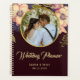 Libro de planificación de boda rústico y elegante con foto y flores de color rosa blush pintadas con acuarela.