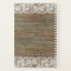 Elegante encaje floral vintage blanco sobre la huella rústica de madera, planificador de bodas de personalizable