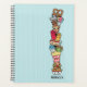 Ilustraciones de comida basura muy lindos. Este divertido planificador tiene un diseño de hamburguesa, papas fritas, perritos calientes, pizza, helados, palomitas de maíz y otros doodles de comida. Sólo tienes que añadir un nombre haciendo clic en el botón de personalización.