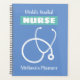 Planificador de enfermería personalizado con diseño de estetoscopio. Elegante libro de calendario con tipografía de guión de broche y ilustracion de equipo médico. Idea de regalo para los trabajadores de la salud, las enfermeras de la UCI, los médicos, los cuidadores, los asistentes, los rescatistas, el personal hospitalario, los trabajadores de urgencias, los primeros auxilios, los compañeros de trabajo, los colegas, el personal de enfermería, los estudiantes, etc. Color de fondo azul o personalizado. Práctico para casa, oficina, trabajo y escuela.